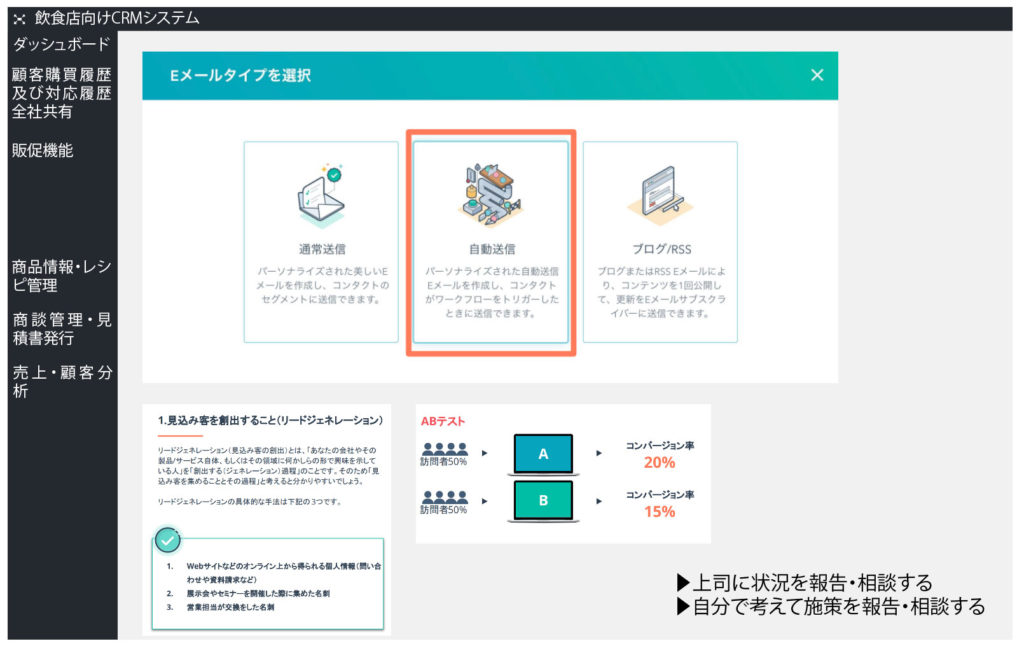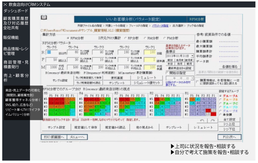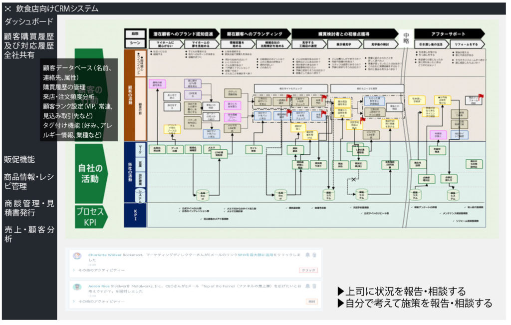 CRMシステムの導入により、マンパワーという飲食店の課題を解決させ、マーケティング活動のために顧客情報を利用し、顧客を醸成・育成(リードナーチャリング)することを目的だ。日本の素晴らしい農作物や文化を輩出することで飲食店のそれぞれの企業理念を達成する。